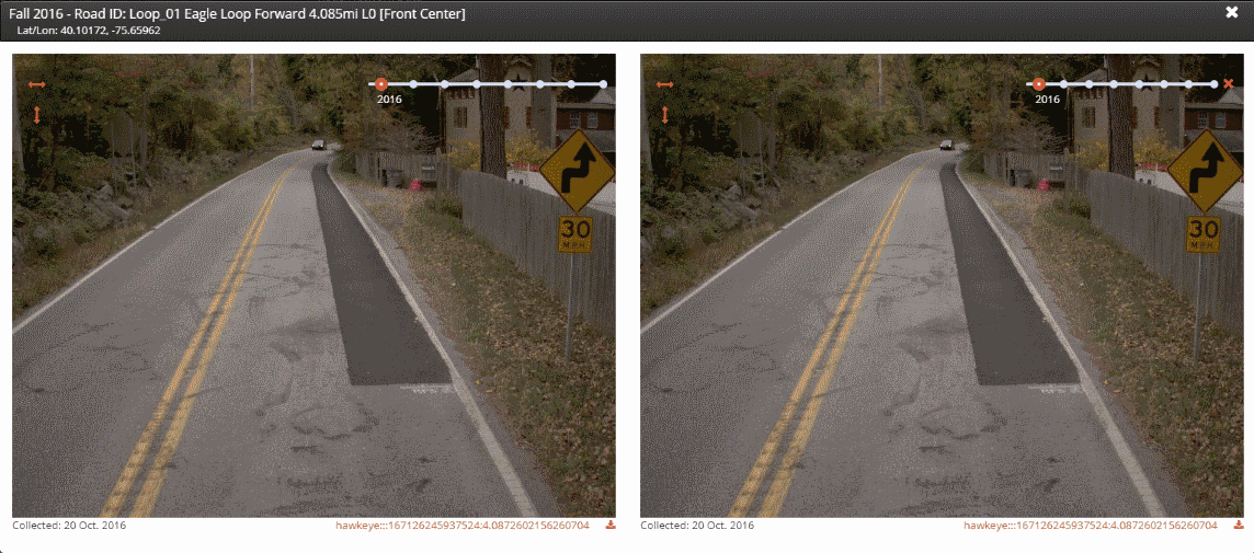 Hawkeye : Insight displays images from multiple years, matched spatially so you can compare visual changes over time.