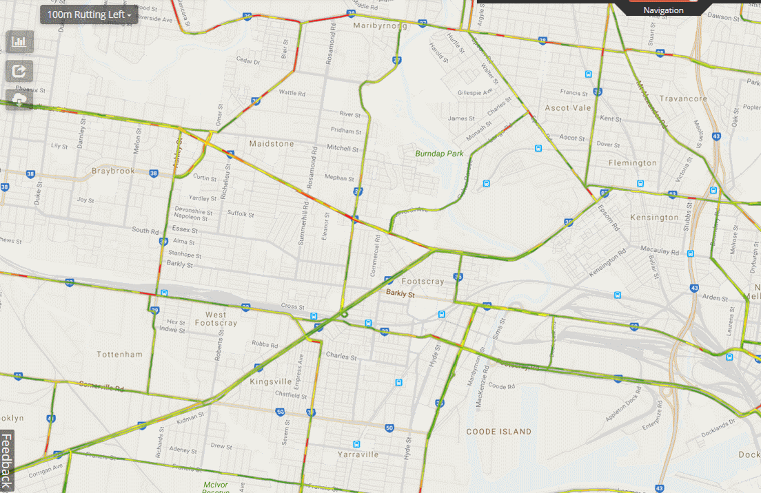 Utilising the familiar mapping functionality of Google Maps, Insight allows the user to navigate through their collected data parameters and assess the condition of their roads.